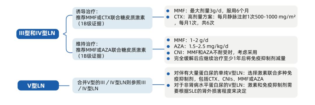 2019年6月 ,EULAR发布SLE办理引荐更新 ,针对肾脏累及的患者,引荐运用吗替麦考酚酯或静脉运用低剂量环磷酰胺(CTX)进行诱导医治,运用吗替麦考酚酯或硫唑嘌呤(AZA)进行保持医治。而关于严峻的肾病综合征或效果欠安的患者,若 不兼并未能操控的高血压、肾活检高缓慢指数和/或肾小球滤过率 下降的状况,引荐吗替麦考酚酯联合低剂量钙调神经磷酸酶抑制剂(CNI)进行及时有用的医治[3]。