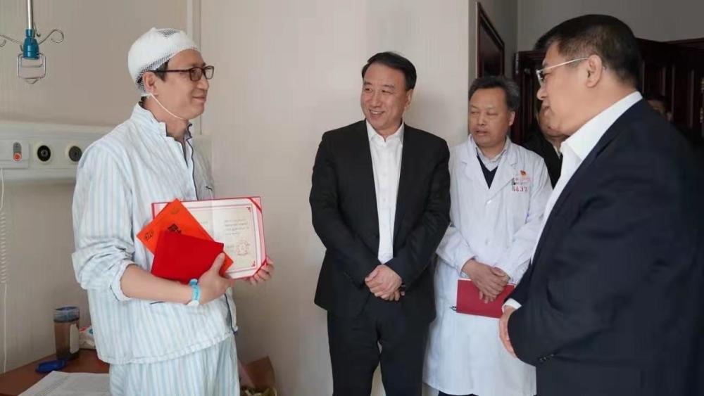 今日正午,北京市委社会工委书记、市民政局局长李万钧,向阳区委书记王灏,市卫生健康委副主任李彦梅等领导专程到医院看望了向阳医院伤医事情中的拔刀相助人员田宇、杨硕同志,并现场颁布北京市拔刀相助人员奖章、证书和奖金。
